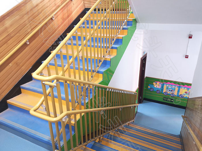 楼梯安全扶手的主要功能是:当人们沿着楼梯上下时,人们可以通过楼梯安全扶手的支撑更容易。儿童楼梯扶手有两排扶手面杆,上层距地面90cm,下层距地面65cm双排扶手适用于有孩子的家庭,也适用于幼儿园、儿童宫、游乐园等儿童活动场所。